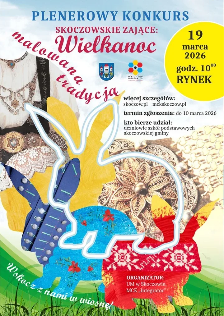 Skoczów przygotowuje się na wiosnenny zryw kolorów i tradycji – Rynek zamieni się w otwartą pracownię, gdzie uczniowie i mieszkańcy razem ożywią wielkanocne symbole. W planen wydarzeń jest zarówno rywalizacja szkół, jak i wspólne, międzypokoleniowe malowanie przy centralnej figurze zająca. To zaproszenie do zabawy spod znaku regionalnego rękodzieła.