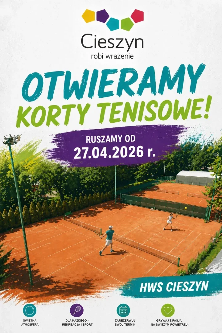 Przy Hali Widowiskowo-Sportowej im. Cieszyńskich Olimpijczyków znów pojawi się ten dobrze znany rytm – piłka, rakieta i ruch na korcie. Od 27 kwietnia 2026 roku tenisowe boiska wracają do codziennego użytku, a otwarcie sezonu ma prosty, praktyczny wymiar: wejście odbywa się według rezerwacji. To dobra wiadomość dla tych, którzy po zimowej przerwie czekali na powrót gry na świeżym powietrzu.