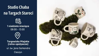 Studio Chaba będzie obecne na targach staroci w Cieszynie w każdą pierwszą niedzielę miesiąca do listopada. Wystawcy zapraszają do obejrzenia i zakupu wyrobów ceramicznych — wśród nich znajdą się zarówno świeżo wypalane serie, jak i pojedyncze, niepowtarzalne egzemplarze oraz przedmioty powstałe w wyniku eksperymentów. Organizatorzy zapowiadają też specjalne motywy inspirowane lokalnym charakterem Cieszyna.